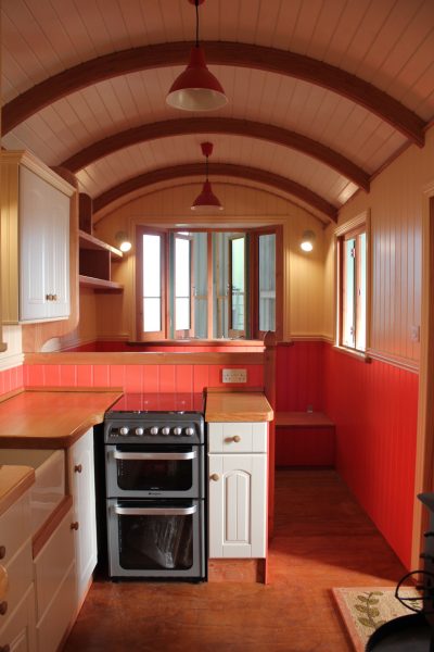 We thought you may want to learn a bit about how these beautiful huts are made – The smaller sized towing wagons take around 2-3 months whereas the living wagons take 4-5 months, depending on the finish and fittings. Any number of features can be added, such as fitted kitchens with hand carved worktops, wood burning stove, fully tiled and plumbed in shower, bedroom, mezzanine bed, bay windows, round windows, timber framed veranda… the list goes on!